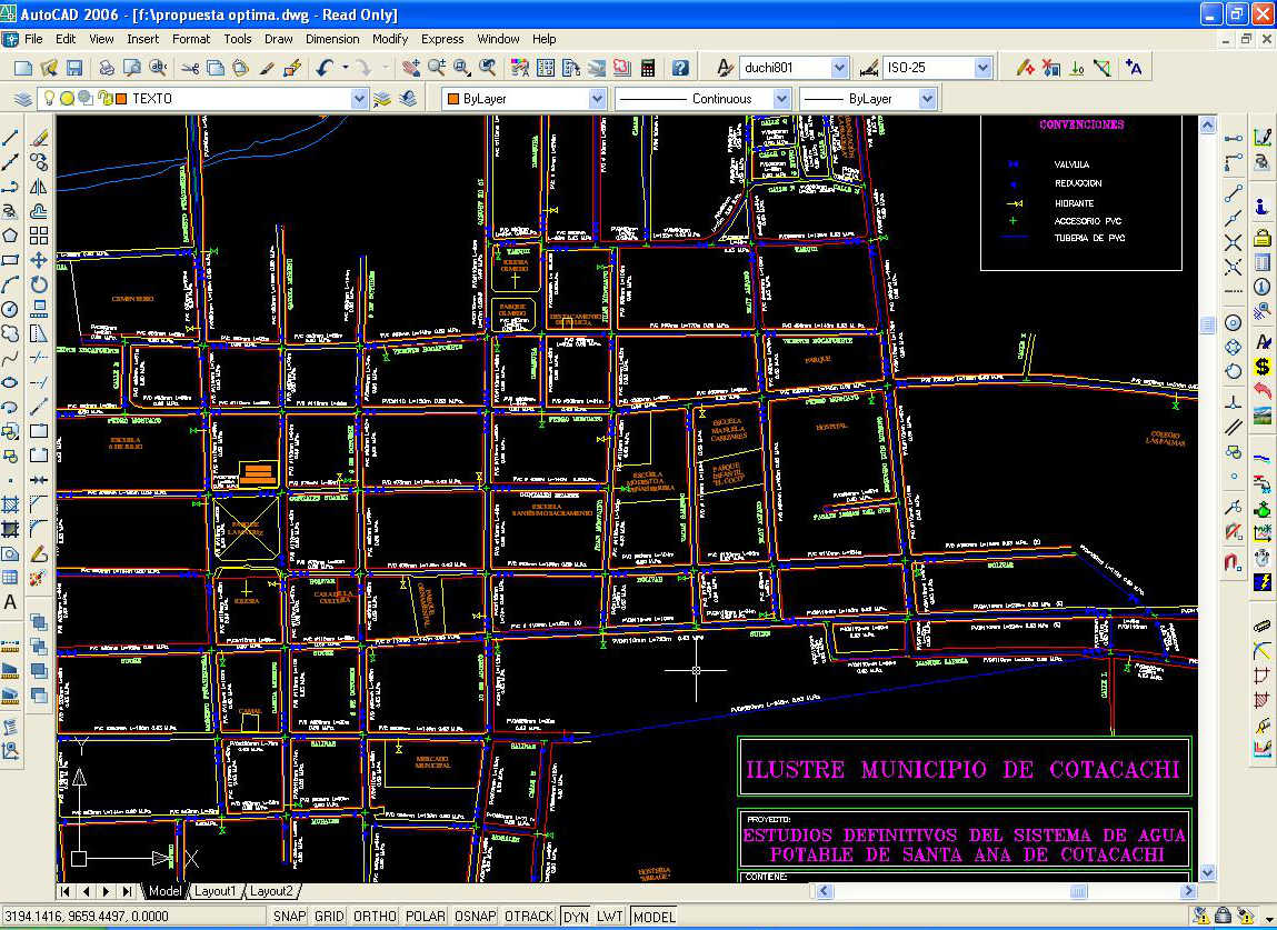 Los trabajos realizados comprenden el levantamiento topográfico de la ciudad con estación total y GPS.