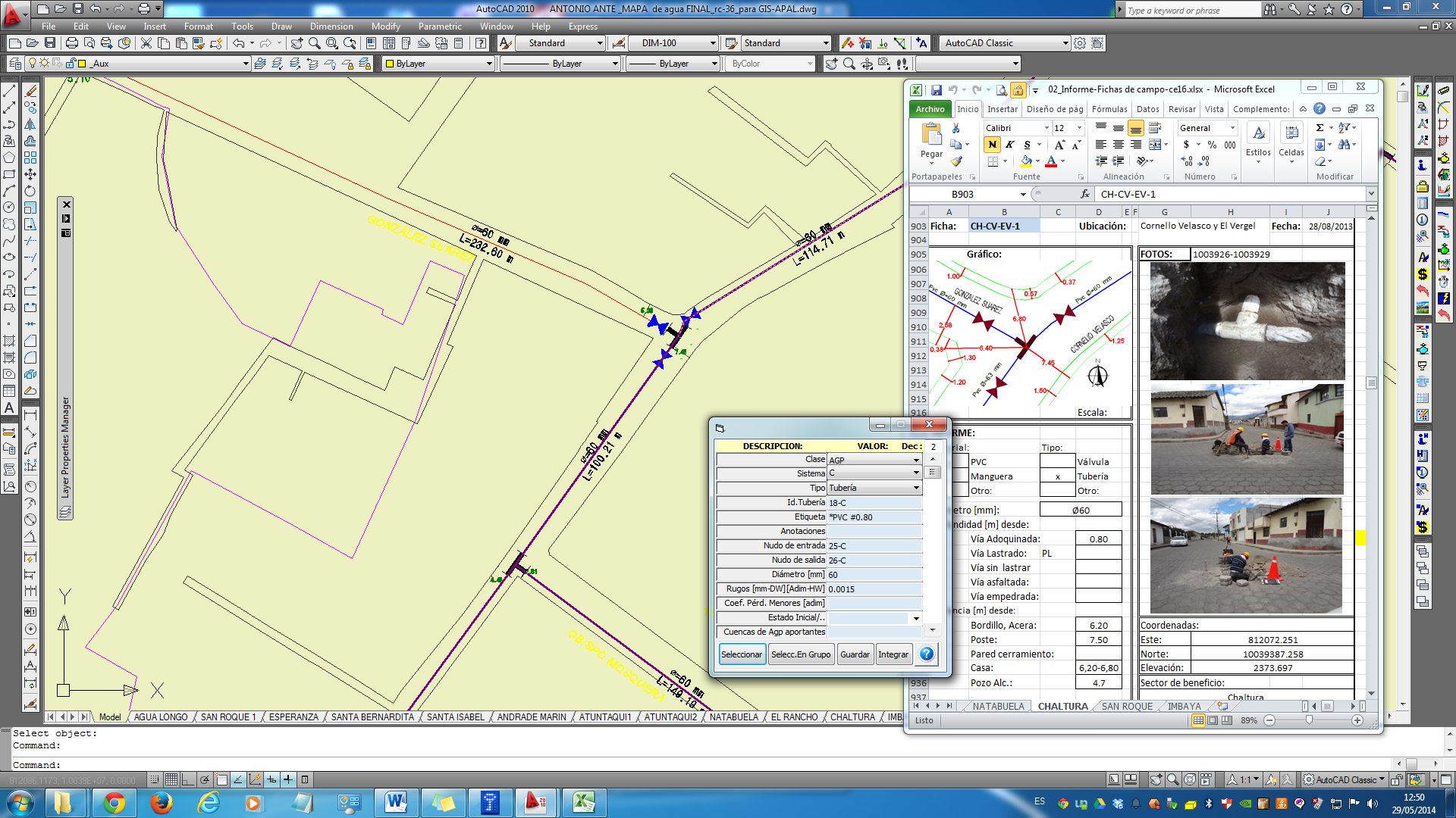 La Empresa de Agua Potable y Alcantarillado del Cantón Antonio Ante, suscribe un contrato con RR (HIDROSOFT), para realizar el diagnóstico de los sistemas existentes y los estudios de alternativas válidas y proceder a realizar los diseños definitivos del alcantarillado de la ciudad de Atuntaqui. Anteriormente GIS-APAL fue instalado para catastrar, supervisar, diseñar y gerenciar los sistemas de agua potable de todo el cantón Antonio Ante; esta vez GIS-APAL se lo aplica para registrar, georeferenciar, y gaurdar cualquier otra características de todos los componentes del alcantarillado existente, permitiendo generar instantáneamente los perfiles de alcantarillado siguiente trayectorias arbitrarias, lo cual, conjuntamente con las herramientas de diseño permite visualizar los problemas y proceder a su corrección. (ver: GIS-APAL mapa del agua cantón ANTONIO-ANTE (Atuntaqui-Ecuador 2013-2014)